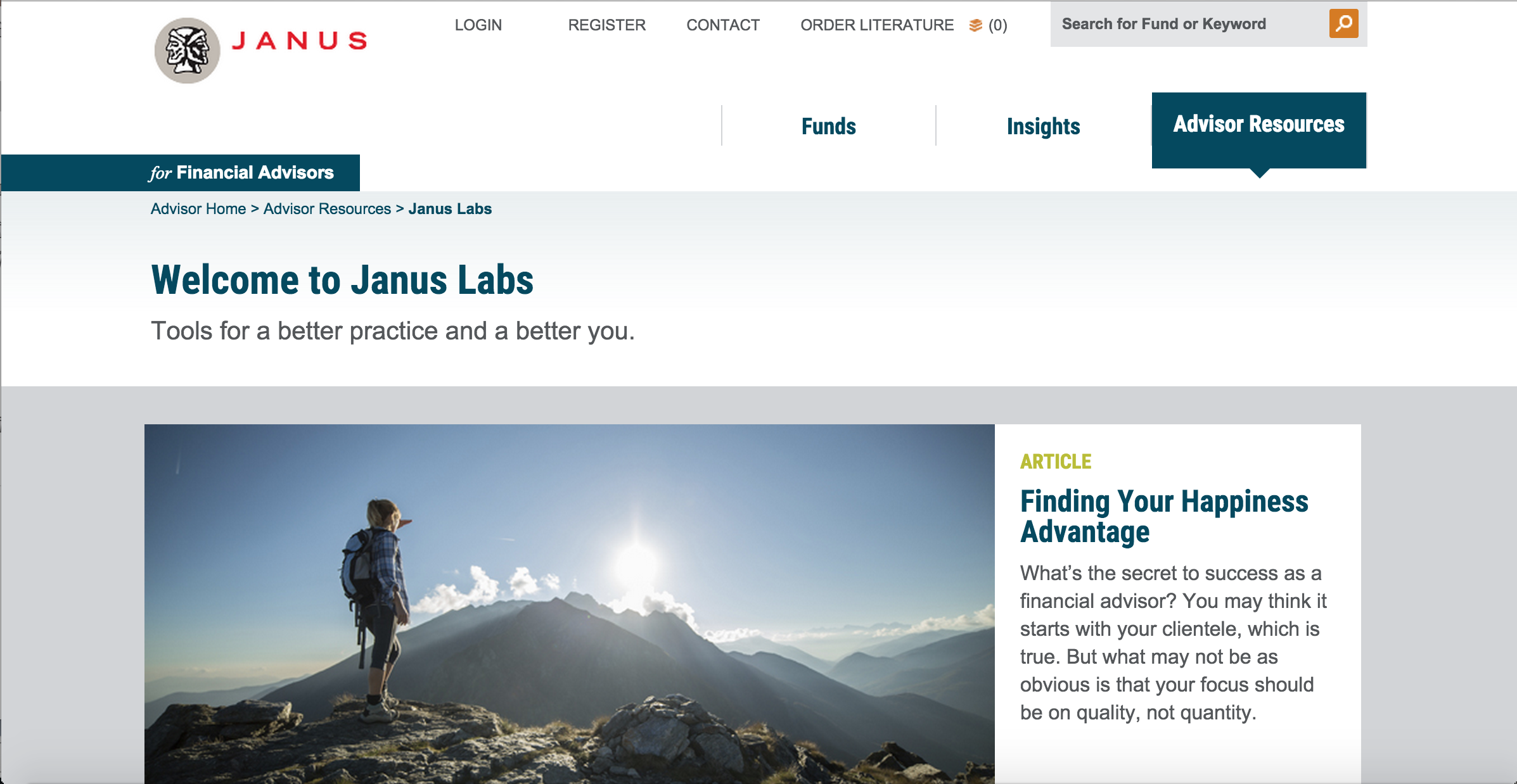 I worked with the Janus team to develop the web content for Janus Labs – a value-added program for financial advisors to improve their practices and lives.